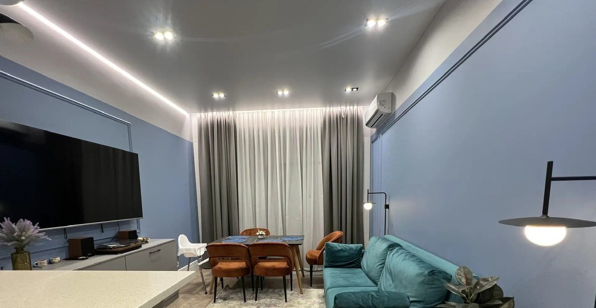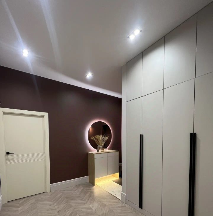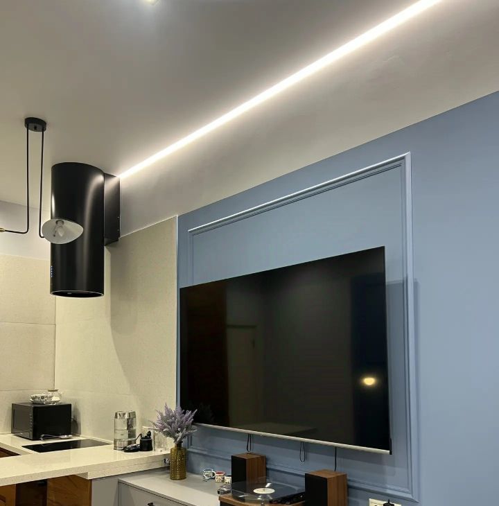 Высота потолков 3 метра. Большие панорамные окна наполняют помещения естественным светом и визуально расширяют пространство. Вечером в квартире может быть так же светло, как и днем. Разные уровни света, позволяют менять атмосферу в помещении и выбирать сценарий освещения под настроение.