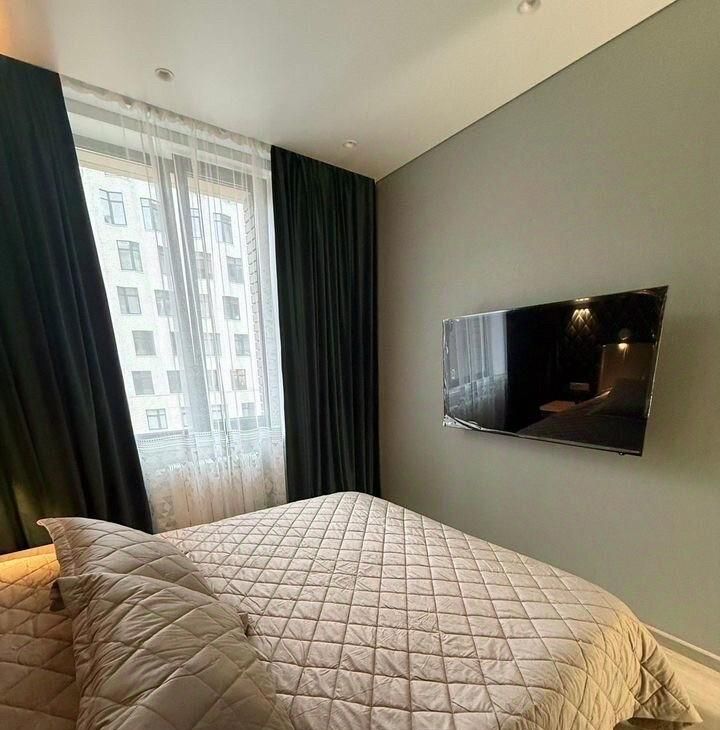 В квартире выполнен дизайнерский ремонт, который создаёт атмосферу уюта и комфорта. Светлые и просторные комнаты обставлены современной мебелью. Большая кухня площадью 16 кв. м оснащена всей необходимой техникой: холодильником, посудомоечной машиной и кондиционером. В гостиной установлен телевизор, а в ванной комнате - душевая кабина и стиральная машина. Просторный отдельный санузел обеспечивает удобство для всех жильцов.