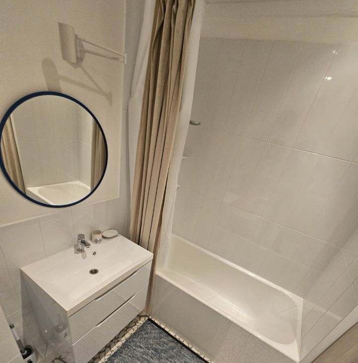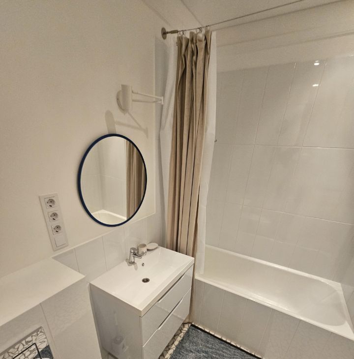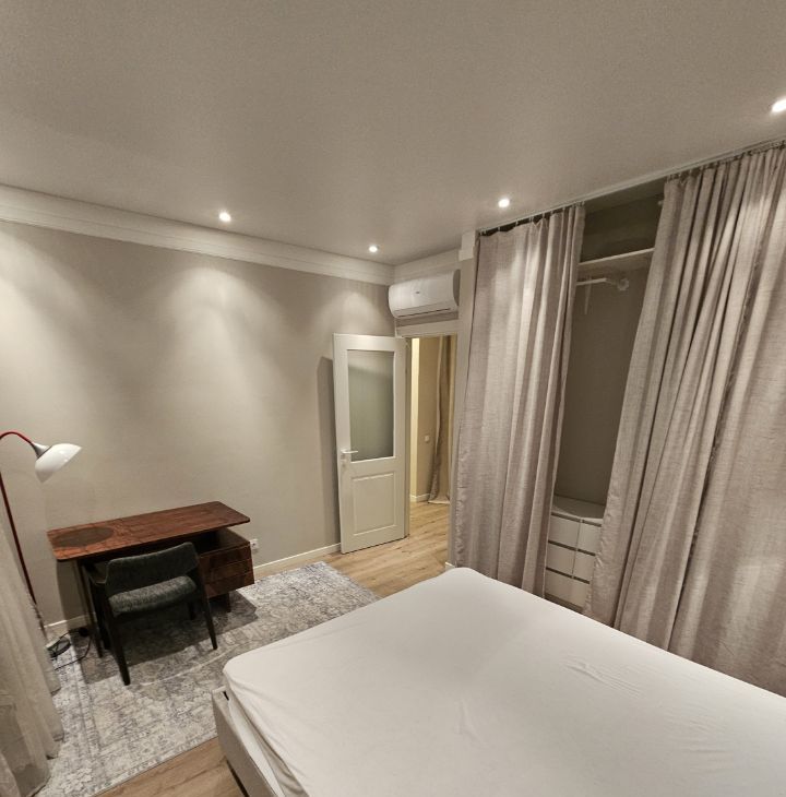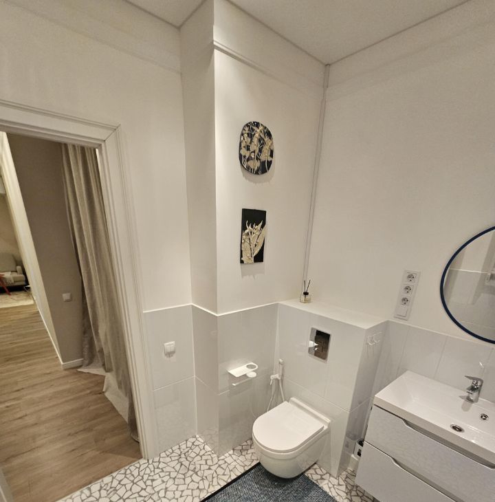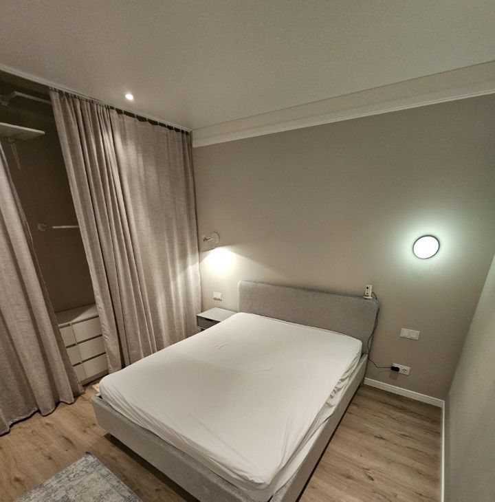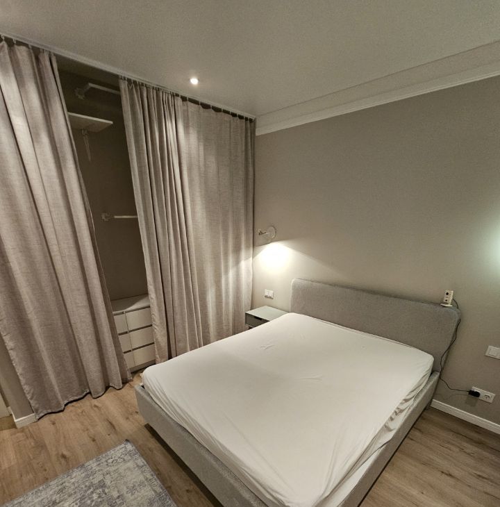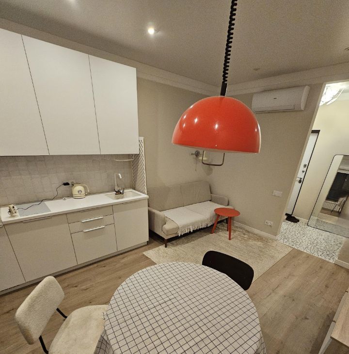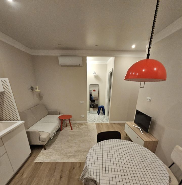 Квартира выполнена в дизайнерском стиле и оснащена всей необходимой мебелью и техникой. Здесь есть кондиционер, холодильник, посудомоечная и стиральная машины, а также телевизор. В квартире предусмотрена раздельный санузел с ванной, а окна выходят во двор, поэтому здесь всегда тихо и уютно. Также есть небольшой балкон, где можно наслаждаться свежим воздухом.
