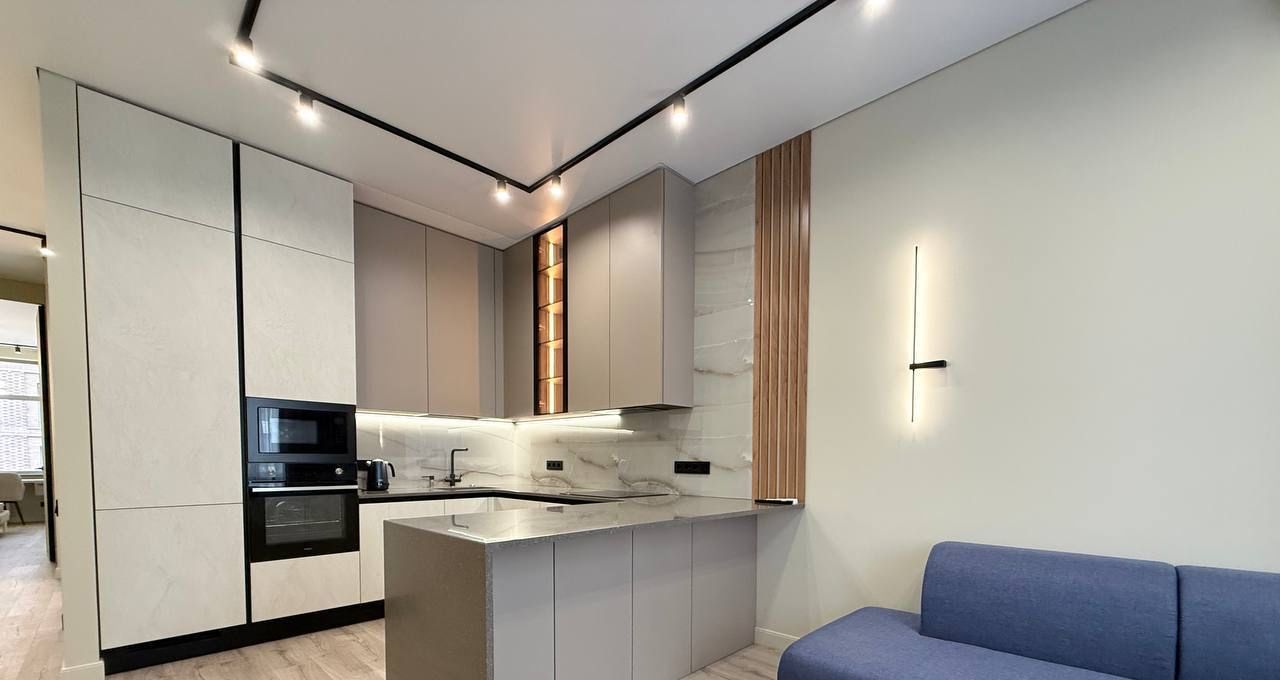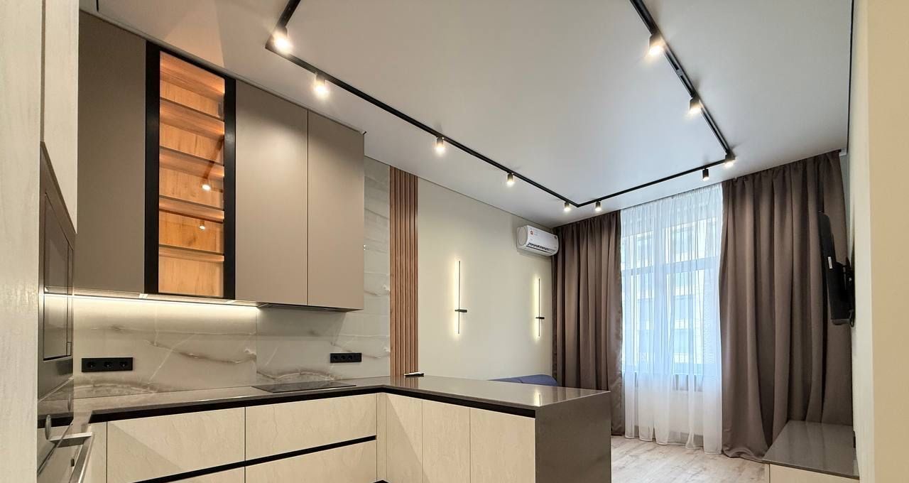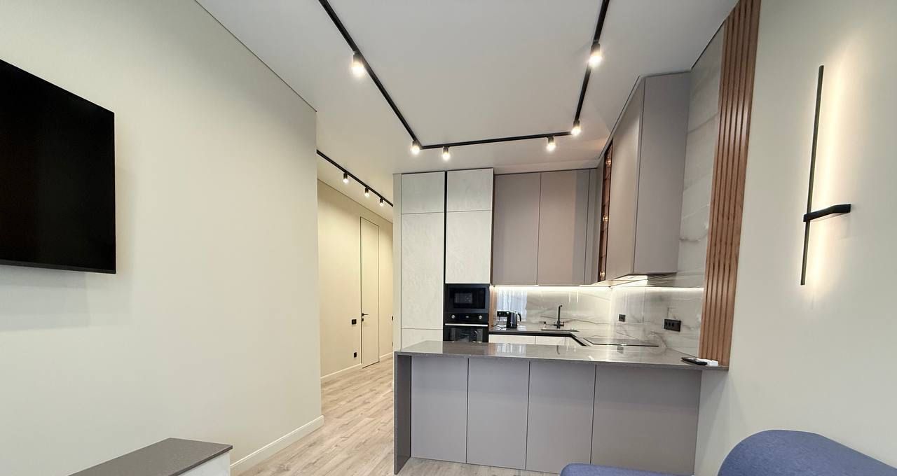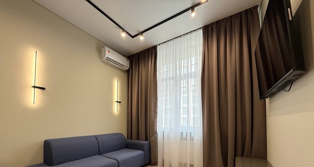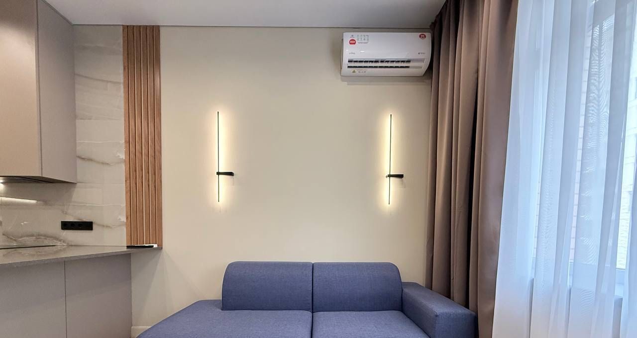 В квартире есть всё необходимое для комфортного проживания. Дизайнерский ремонт создаёт уютную атмосферу. На кухне и в комнате имеется мебель, а также современная техника: кондиционер, холодильник, посудомоечная машина, телевизор и стиральная машина. Санузел совмещённый, с душевой кабиной.