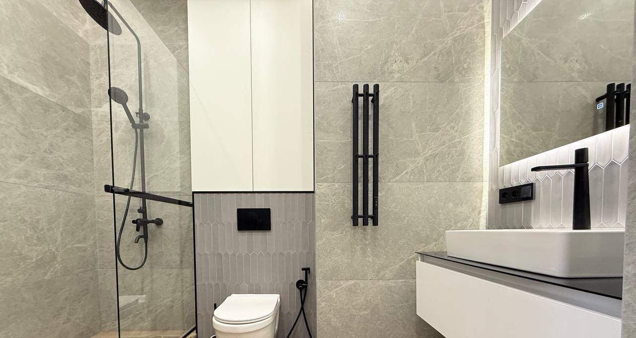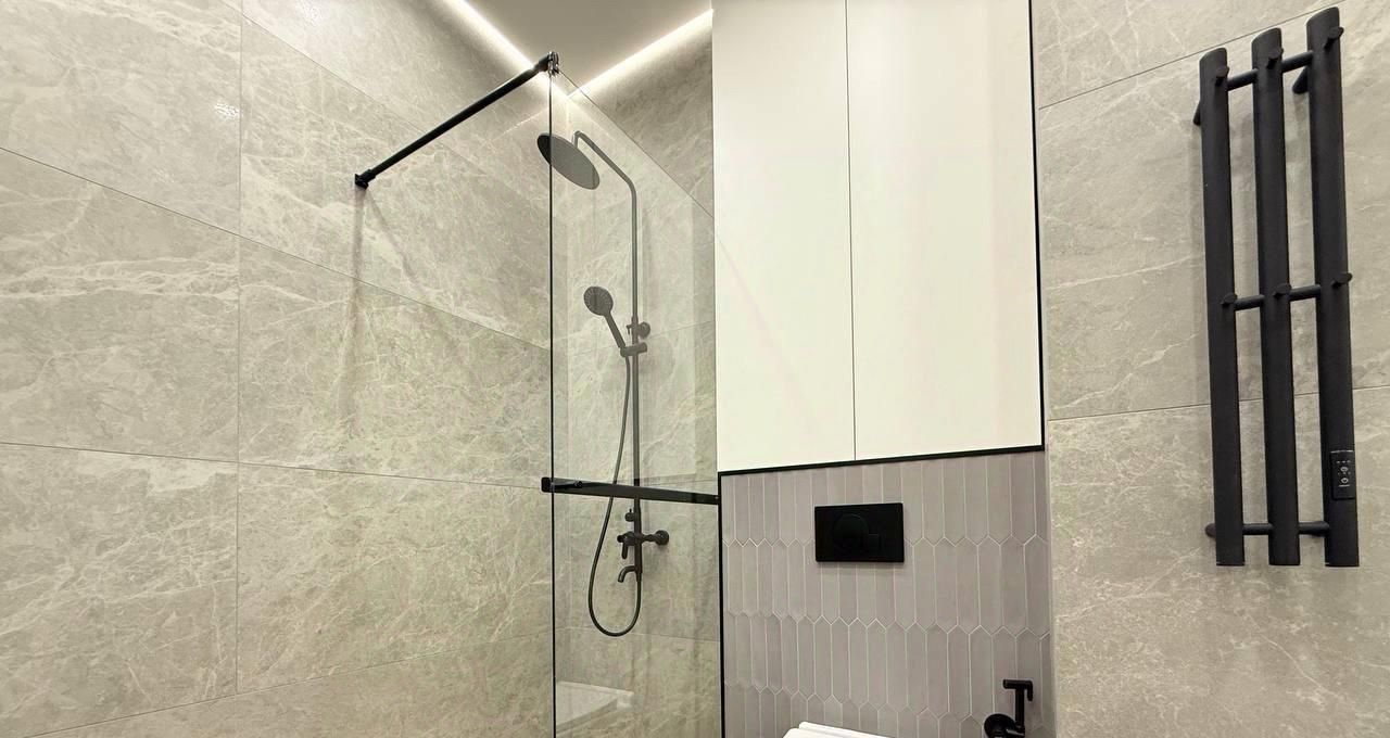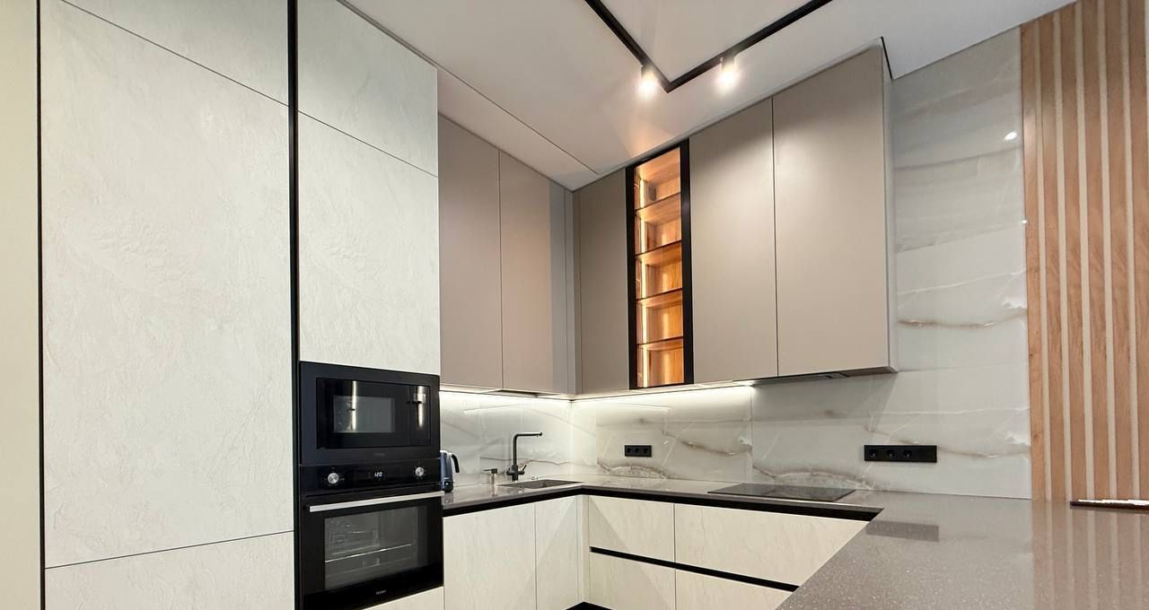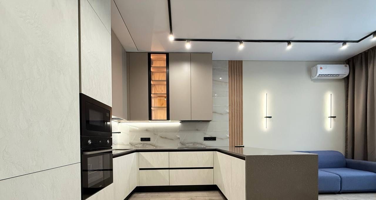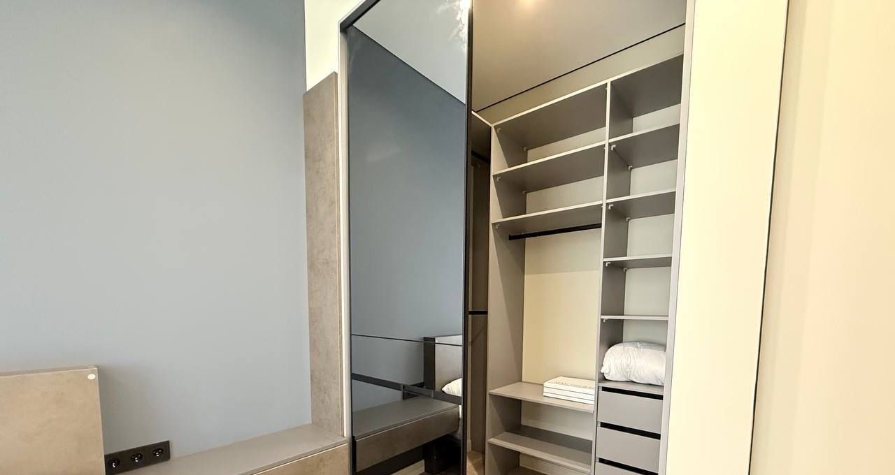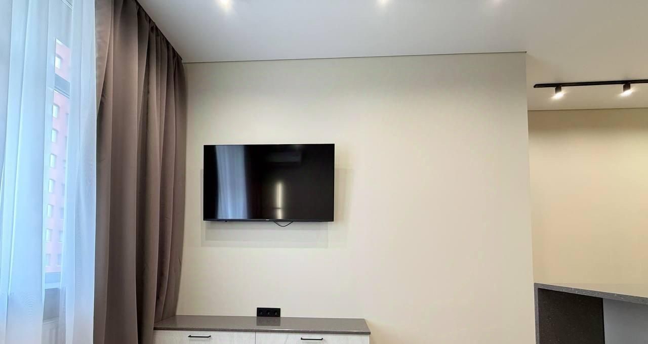 В квартире есть всё необходимое для комфортного проживания. Дизайнерский ремонт создаёт уютную атмосферу. На кухне и в комнате имеется мебель, а также современная техника: кондиционер, холодильник, посудомоечная машина, телевизор и стиральная машина. Санузел совмещённый, с душевой кабиной.