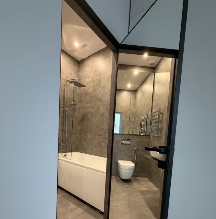 Кухня оснащена всем необходимым для кулинарных экспериментов: посудомоечной машиной, варочной панелью, духовым шкафом, вытяжкой и холодильником. В квартире два совмещенных санузла — удобно для семьи или гостей. Для хранения одежды предусмотрены вместительные шкафы и отдельная гардеробная комната.