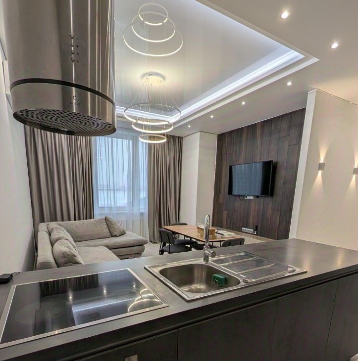 Сдается в аренду просторная двухкомнатная квартира. Выполнен дизайнерский ремонт, оснащена всей необходимой техникой и мебелью.