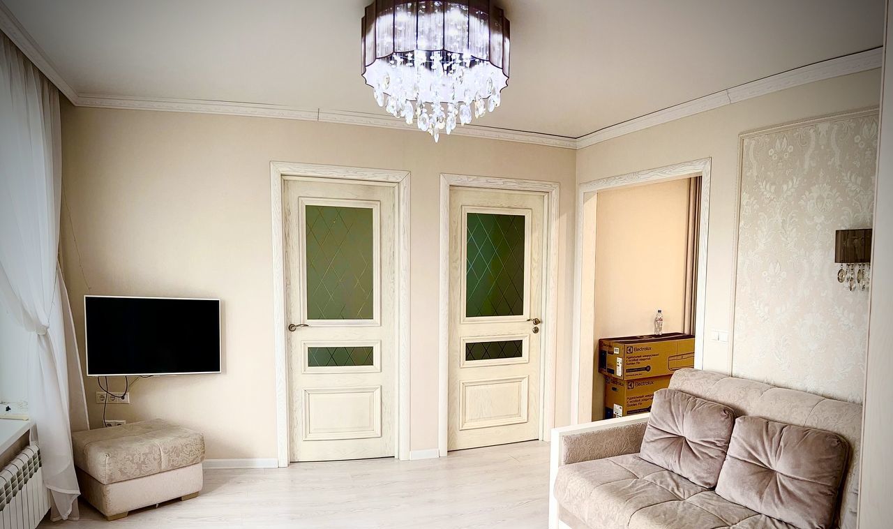 Квартира отличается стильным и современным дизайном. В ней есть все необходимое для комфортного проживания: холодильник, телевизор и стиральная машина. Мебель установлена на кухне и в комнате, что позволяет сразу въехать и начать жить. В ванной комнате установлена ванна, санузел совмещенный. Также в квартире есть балкон и лоджия, где можно наслаждаться свежим воздухом и красивыми видами.