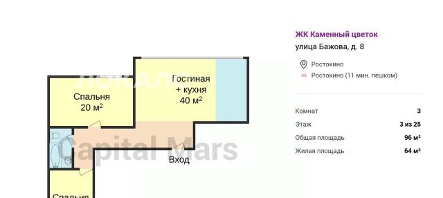 В подъезде работает консьерж. На первых этажах задания находятся аптеки, салон красоты, супермаркеты. В окружении - сквер Бажова и парк Акведук, школы, поликлиники, тренажерный зал. В 20-25 минутах ходьбы - ВДНХ. Быстрый выезд на проспект Мира.