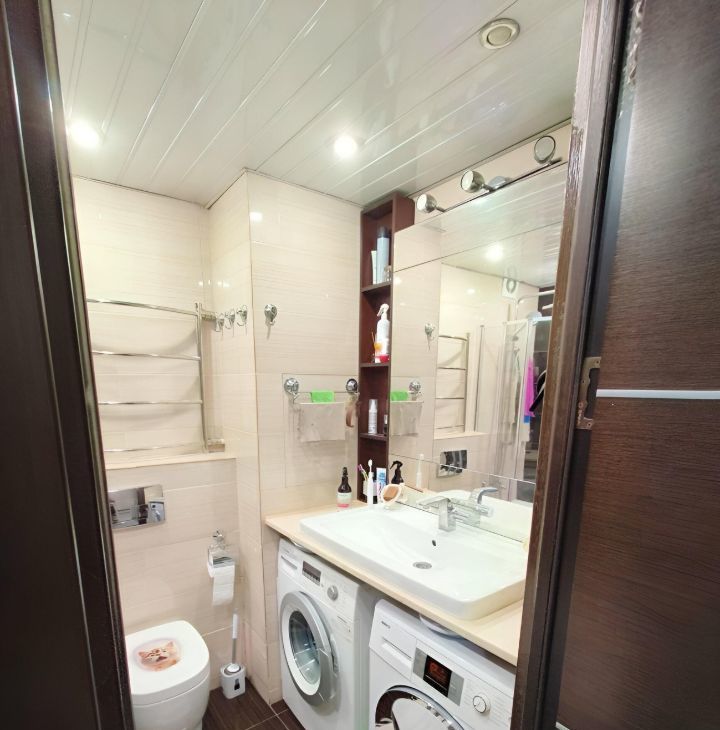 Дом ухоженный, с мусоропроводом, что добавляет удобства в повседневной жизни. В районе развитая инфраструктура: рядом находятся школы, детские сады, клиники, магазины. До метро можно дойти пешком за 15 минут, что делает передвижение по городу быстрым и удобным.