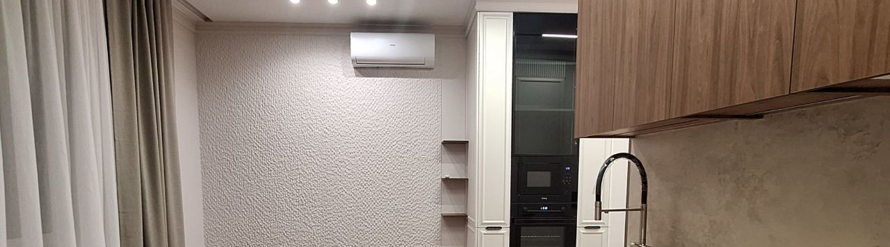Кухня-гостиная (совмещенная): Это сердце квартиры. Стильный дизайнерский ремонт создает атмосферу дорогого отеля или современного европейского дома. Здесь приятно принимать гостей и собираться семьей по вечерам.