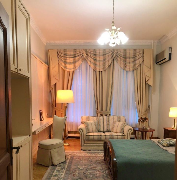 Сдается атмосферная московская квартира в тихом старом центре. Дорогой ремонт в идеальном состоянии. Вся необходимая мебель и техника. Новые кондиционеры. Мебель, шторы, белье, одеяла - после химчистки. Просторный холл, большая гостиная, 2 спальни, кухня, кладовка 5м, с/у - 9м. Высокие потолки. Окна выходят во двор и на Новый Арбат. Без животных.