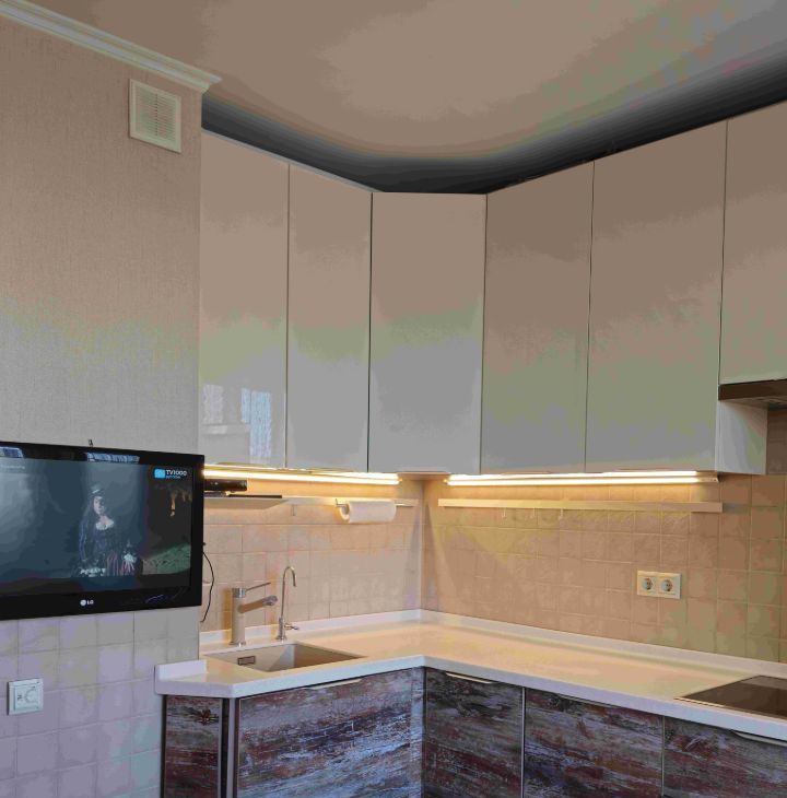 двумя свежими холодильниками, электрической плитой, посудомоечной машиной.