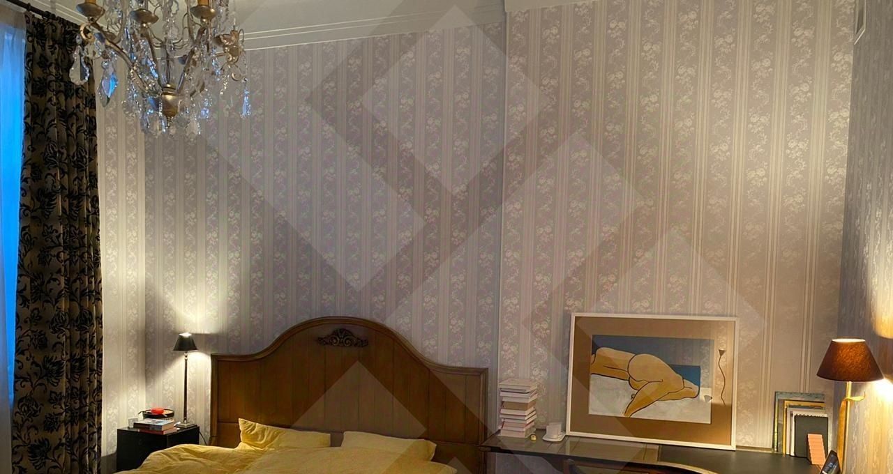 Планировка: гостиная, 2 спальни, кухня, 2 с/у. Квартира оборудована гардеробной комнатой. Балкон. Окна выходят на 2 стороны. Высота потолков 3,5 м.