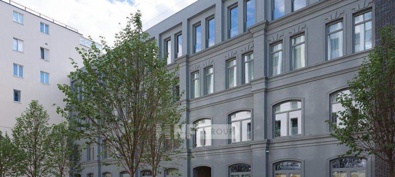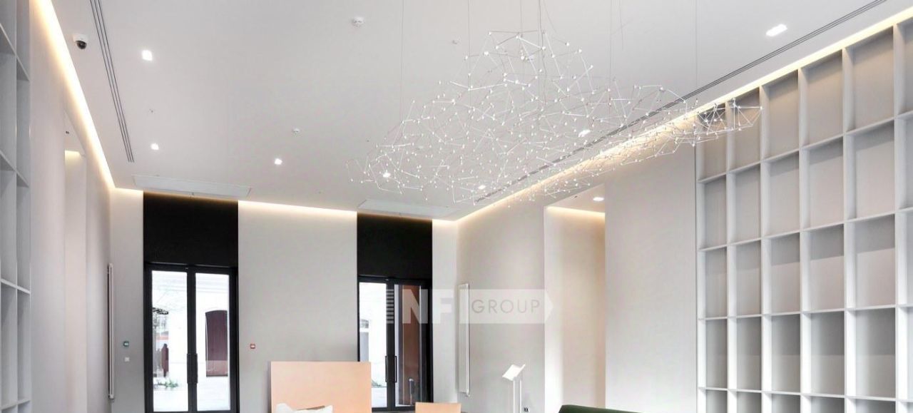 Интерьер выполнен в стиле городской классики с акцентом на натуральные материалы: дубовый паркет, мрамор Luna Grey Honed в ванных, смесители Gessi, сантехника Villeroy & Boch. Главный акцент — приватная терраса площадью 40 м² с подогревом, выходящая во внутренний благоустроенный двор.