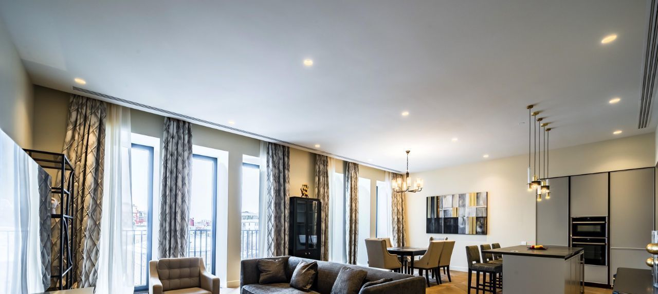 Квартира полностью оборудована мебелью и современной техникой . Встроенная кухня, вся необходимая бытовая техника от ведущих производителей. Система кондиционирования с очисткой и увлажнением воздуха.