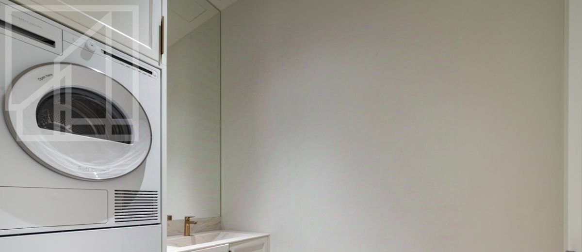 Планировка: гостиная-кухня-столовая, две спальни со своими гардеробными и ванными комнатами, гостевой санузел, постирочная, холл. Из гостиной спланирован выход на приватную террасу площадью 40 м². Интерьер оформлен в современном стиле в приятных светлых тонах.