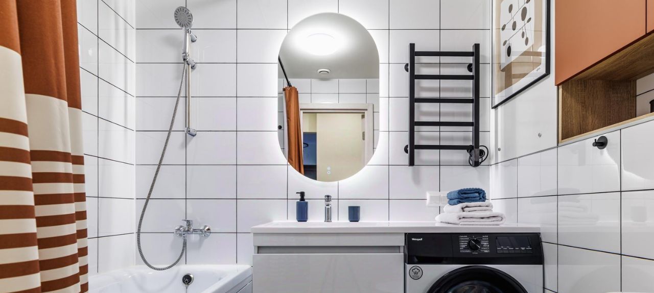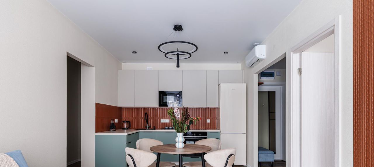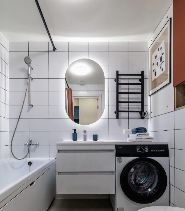 Квартира укомплектована новой мебелью и всей необходимой техникой: холодильник, варочная панель, духовкой шкаф, стиральная машина с функцией сушки, посудомоечная машина, микроволновая печь, кондиционер, телевизор, Яндекс тв станция и робот пылесос.