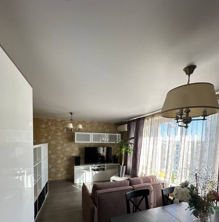 Сдаётся просторная и уютная 3комнатная квартира формата 3к1, идеально подходящая для семьи с 1 или 2 детьми. Общая площадь около 68 м² с продуманной умной перепланировкой: кухнягостиная 25 м², спальня 9 м², детская 17 м², коридор 7 м², гардеробная 5 м² и санузел 5 м² — всё удобно разделено на зоны отдыха, работы и приватную территорию семьи.