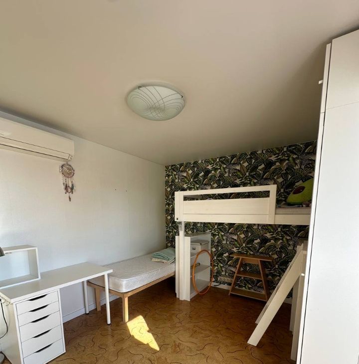 в ней предусмотрена продуманная мебель для ребёнка/подростка (кровать, шкаф, рабочая зона для учёбы), и все элементы мебели остаются на месте — снимать и убирать их при съёме не планируется. Это удобно для семьи, не нужно тратить время и деньги на покупку новой мебели.