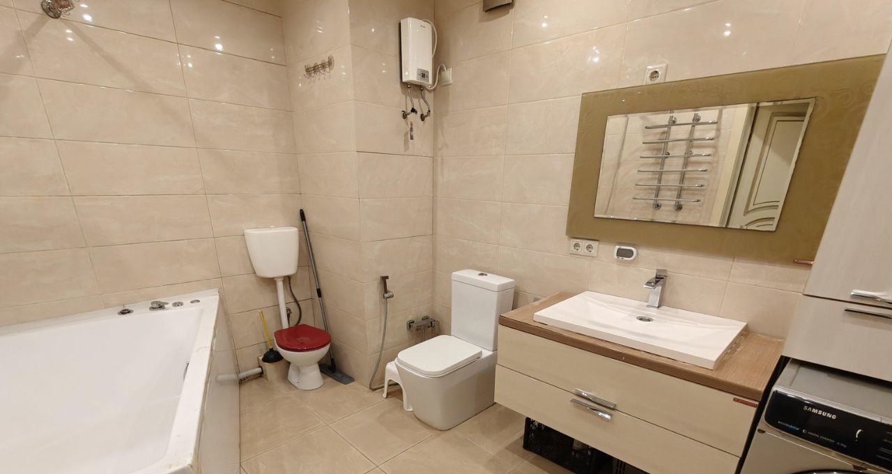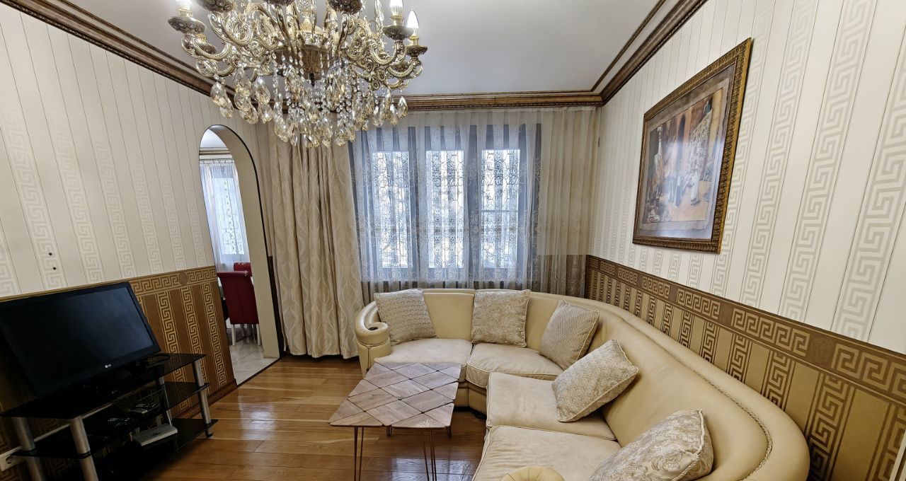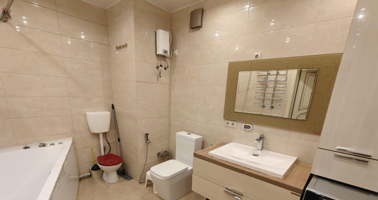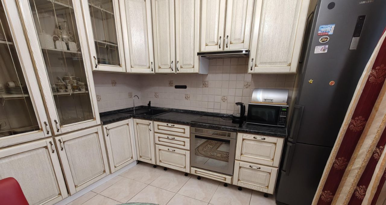 В квартире сделан дизайнерский ремонт, что придает ей современный и стильный вид. Жилая площадь составляет 45 кв. м, а кухня — 10 кв. м. Высота потолков — 2.64 метра. В квартире есть вся необходимая техника: холодильник, телевизор, стиральная машина, поэтому можно сразу въехать и начать жить. Мебель установлена как на кухне, так и в жилых комнатах. Санузел совмещенный, оборудован ванной. Окна выходят во двор, поэтому в квартире всегда тихо и спокойно.