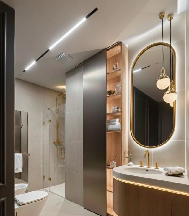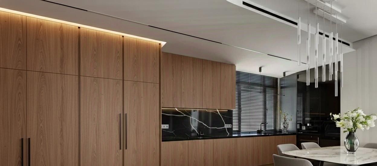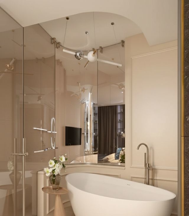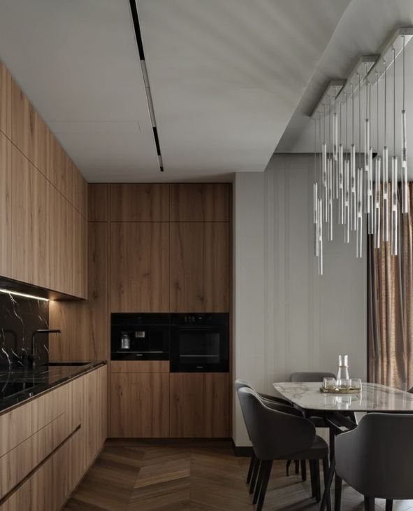 Кухня оснащена современной встроенной техникой и элегантной обеденной зоной. Санузлы оформлены в лаконичном стиле с премиальной сантехникой. Каждая деталь интерьера подчеркивает статус и вкус будущих резидентов.