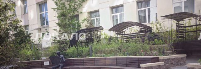 В доме имеется подземный паркинг, своя огороженная территория, охрана, красивый зеленый двор с беседками и скульптурами, есть детская и спортивная площадки.