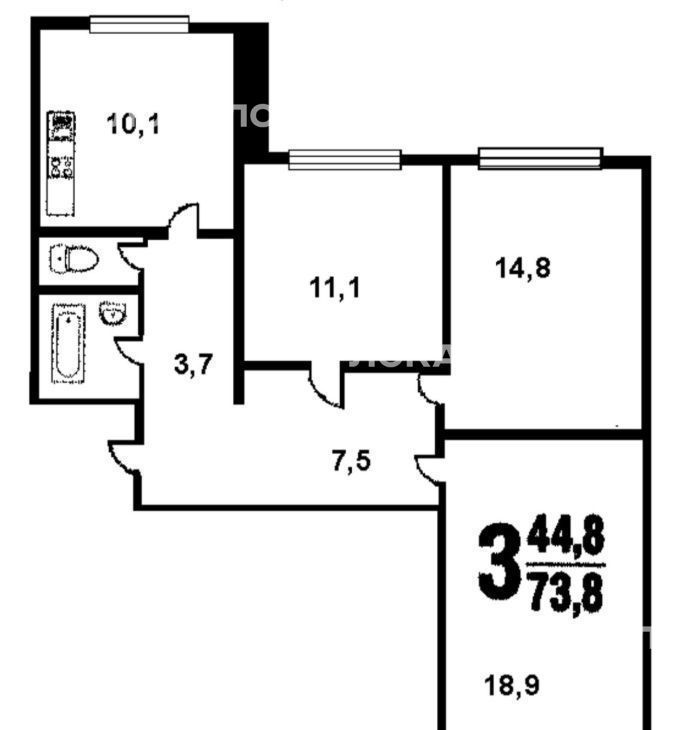 Сдаётся уютная трёхкомнатная квартира на третьем этаже семнадцатиэтажного монолитного дома. Общая площадь составляет 75 кв. м., жилая 42 кв. м., кухня 9 кв. м. Окна выходят как на улицу, так и во двор, поэтому в квартире всегда светло и комфортно. До ближайшего метро всего 6 минут пешком.