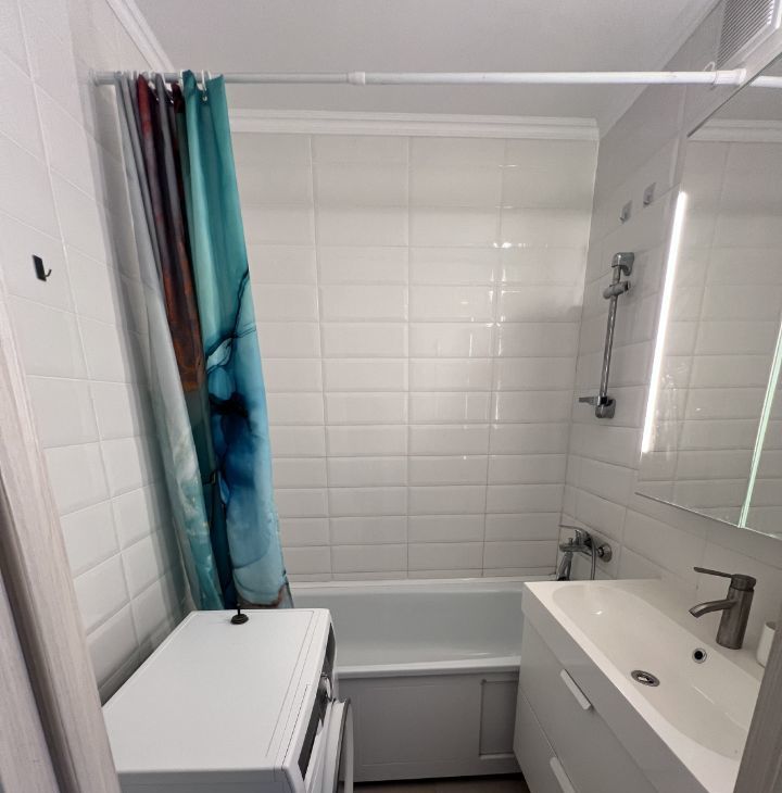 Вся необходимая техника: холодильник, стиральная и сушильная машина BOSCH, телевизор, микроволновка, духовой шкаф.