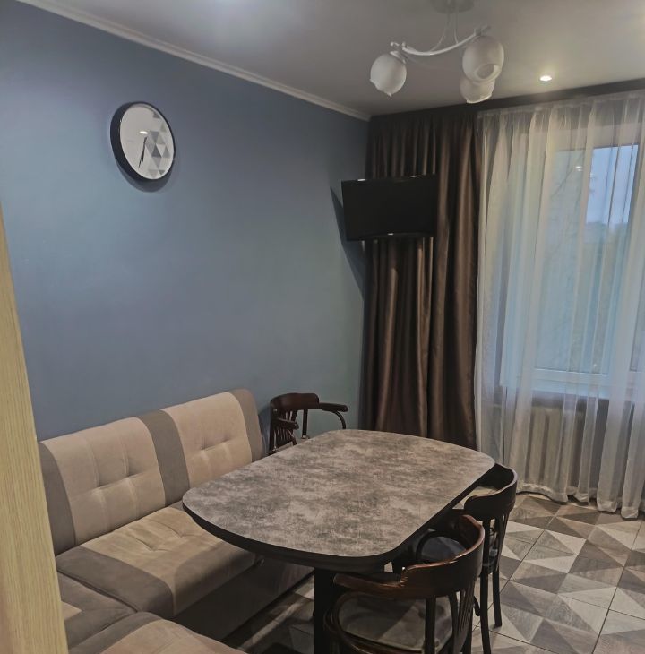 Сдаётся уютная трёхкомнатная квартира с евроремонтом, расположенная на 7 этаже 9-этажного кирпичного дома. Общая площадь квартиры составляет 58 кв. м, окна выходят на улицу и во двор, что обеспечивает хорошее естественное освещение в течение дня. Высота потолков — 2.45 метра.