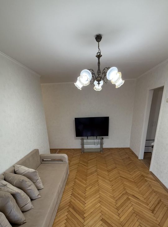 Трехкомнатная квартира после свежего косметического ремонта. В гостиной установлен кондиционер и телевизор Xiaomi 55 дюймов.