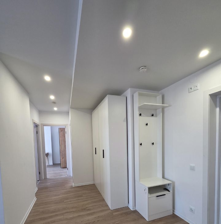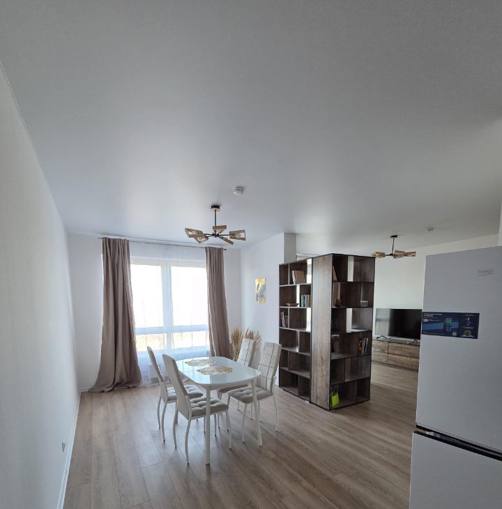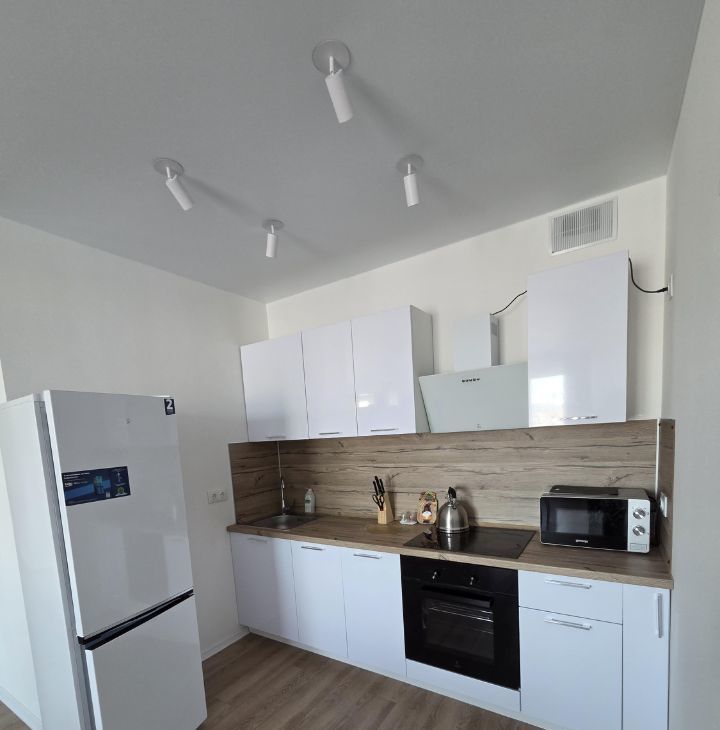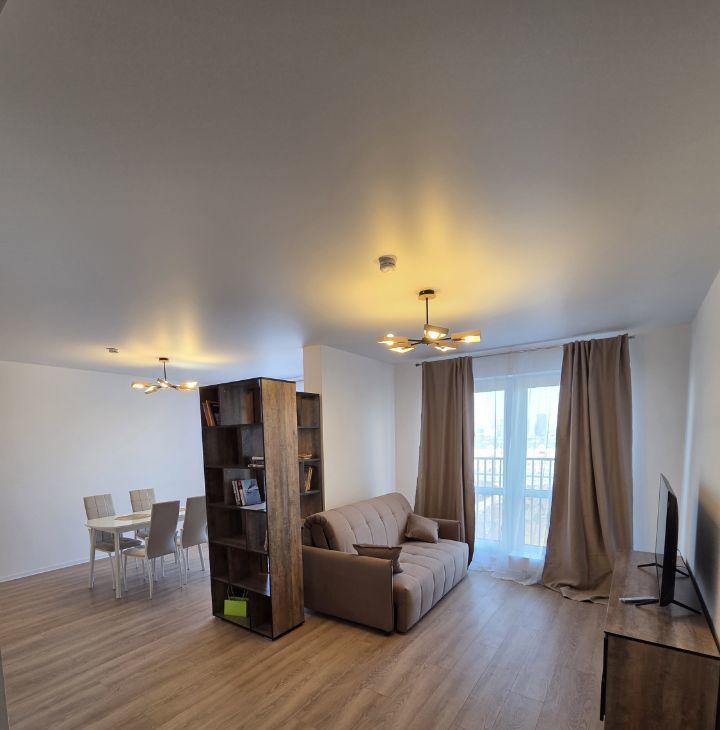 Предлагаем вашему вниманию просторную трехкомнатную квартиру для аренды. Общая площадь составляет 85.1 кв. м, жилая — 34.8 кв. м, кухня — 32.7 кв. м. Квартира находится на 8-м этаже современного дома, построенного в 2025 году, с удобными наземной и подземной (возможно взять в аренду у собственников) парковками. В доме есть один пассажирский и два грузовых лифта. Окна квартиры выходят на улицу и во двор.