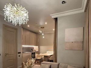 В квартире сделан современный качественный ремонт, полностью укомплектована всей необходимой мебелью и бытовой техникой для комфортного проживания.