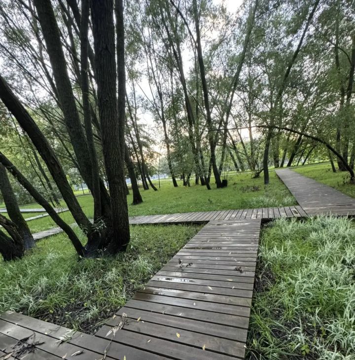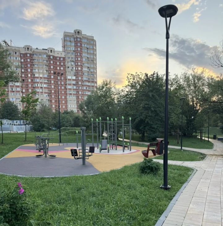 Подъезд выходит в парк с дизайнерским ландшафтом, спортивными и детскими площадками. Рядом, в пяти минутах ходьбы фитнесс центр World Class с двумя бассейнами. Рядом префектура Западного округа. В районе много парков, магазинов, спортивных и образовательных учреждений.