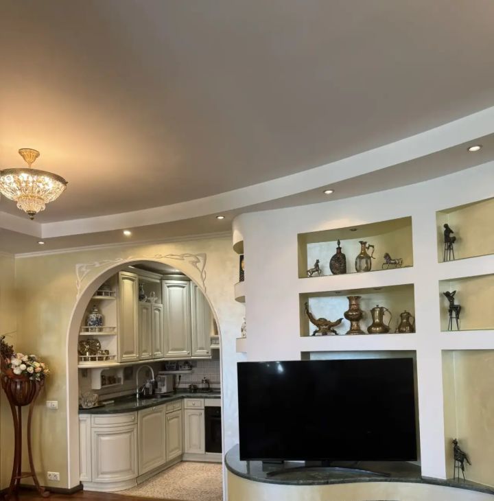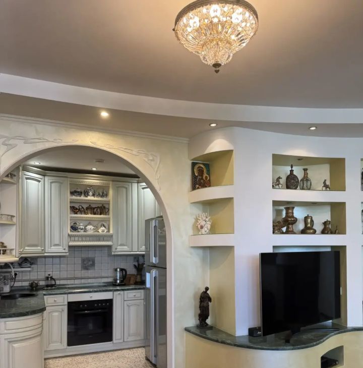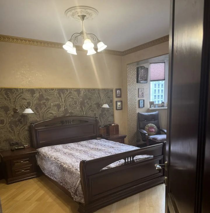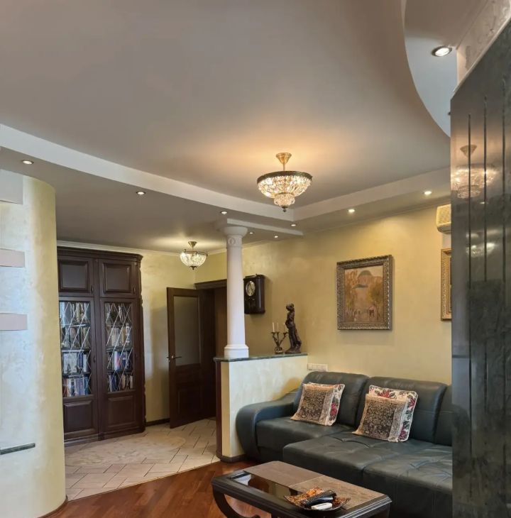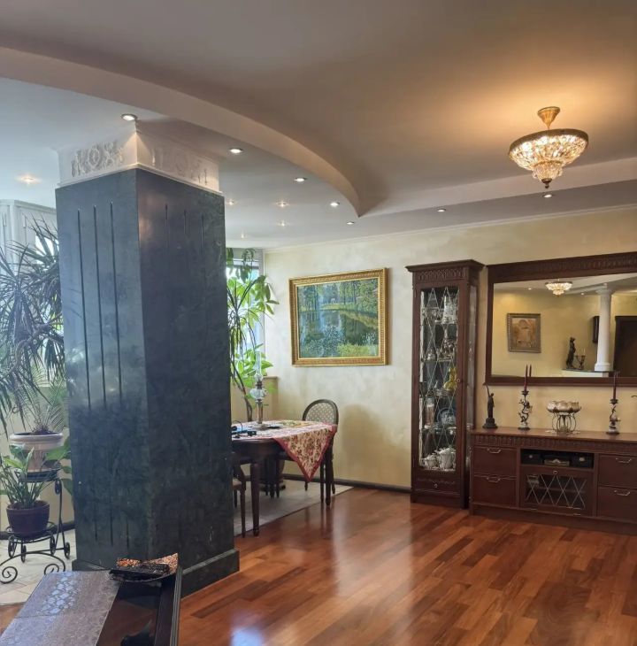 Продается прекрасная квартира с дизайнерским ремонтом в классическом стиле, общей площадью 89,6кв. м. Отделка выполнена натуральными дорогими материалами- мраморные поверхности, подоконники и колонна, паркет из красного дерева и беленого дуба. Теплая и светлая. Двери и мебель делались на заказ из дуба, итальянская кухня деревяная с встроенной техникой Bosch. Много места для хранения вещей. Встроенные шкафы и отдельная гардеробная Пространство имеет две равновеликие зоны. Гостевую- большую гостиную с кухней ( около 50 кв. м.) и приватную- две спальни, совмещенный санузел( 7,5 кВ. м.), большой коридор.