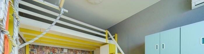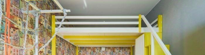* Детская - ДВУХУРОВНЕВАЯ = 17 кв.м.: детская кровать 90*200, большой письменный стол-столешница (напротив окна), детская мебель: платяной шкаф, много(!) ящиков для хранения игрушек, детский спортивный уголок (шведская стенка, турник, канат, кольца, сетка, рукоход);