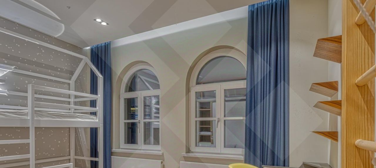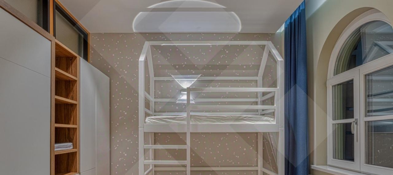 В квартире предусмотрена следующая планировка: просторная кухня-гостиная, мастер-спальня с гардеробной и санузлом, детская/спальня, балкон, гостевой санузел и холл.