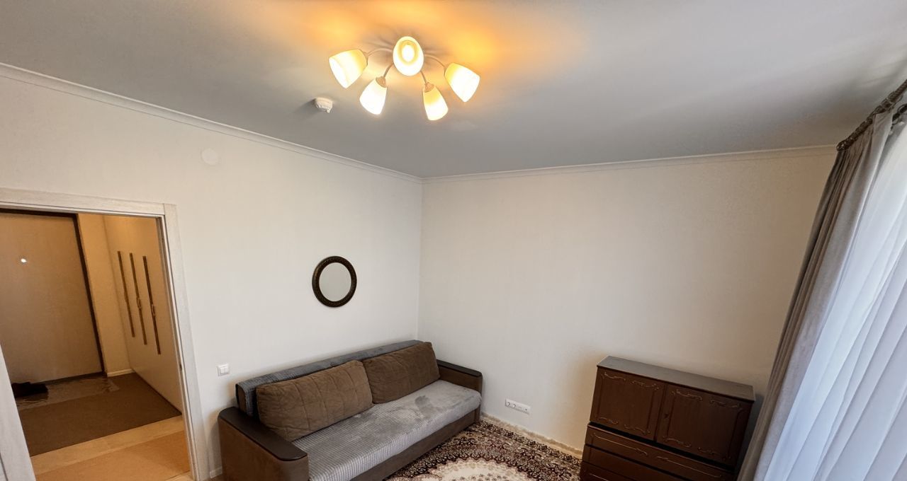 В гостинной: 2-х спальный диван,, Шкаф. окна выходят в тихий двор.