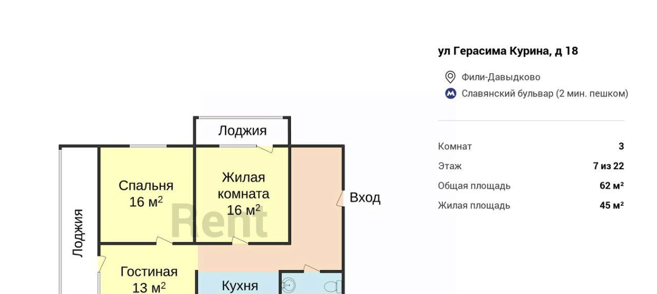 3-к кв. Москва ул. Герасима Курина, 18 (62.0 м²)