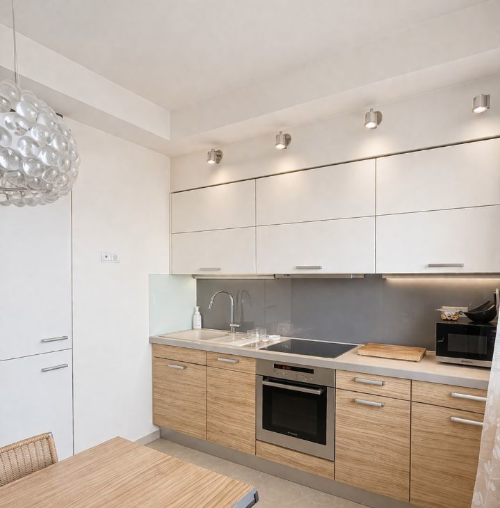 Ремонт дизайнерский и живой, без усталости. В квартире есть все, чтобы заехать и жить: встроенный холодильник и посудомойка, стиральная машина, интернет, кондиционер. Санузел с душевой. Тёплые полы в ванной, на кухне и на балконе, зимой очень ценится. Соседи тихие, на этаже всего 4 квартиры.