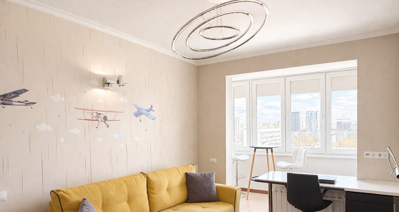 трёхкомнатная квартира 83 кв.м на ул. Героев Панфиловцев, дом 5. 13 этаж, тёплый кирпично монолитный дом, парковка во дворе под шлагбаумом. Окна смотрят на дорогу и небольшой парк, а вдали видны высотки на Ленинградке, вечером получается очень киношно.