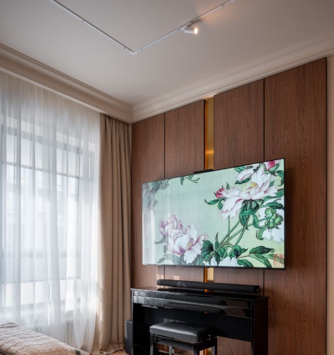 Квартира оборудована системой умный дом, камерами видеонаблюдения, установлен электропривод штор.