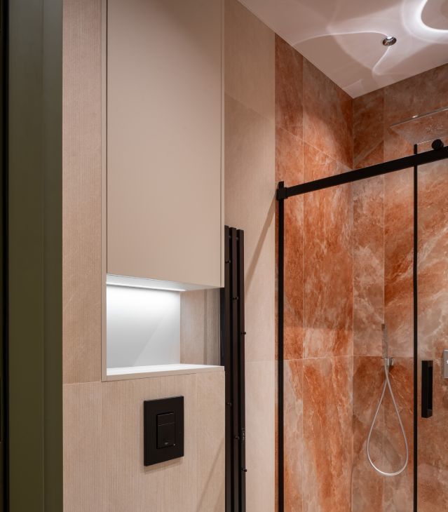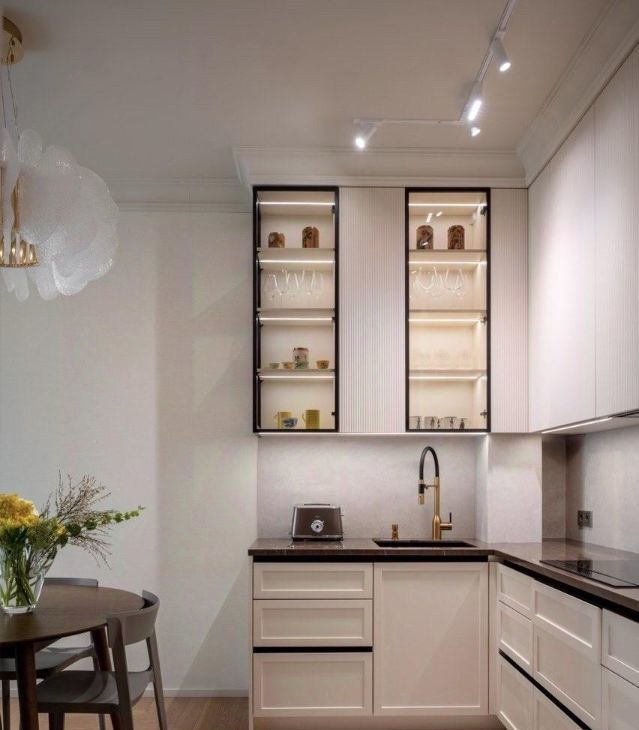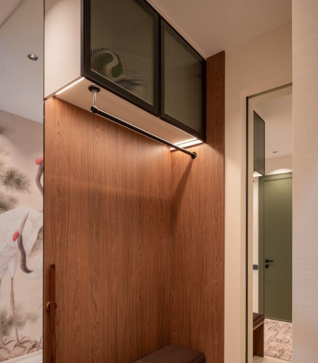 Благодаря грамотной планировке в квартире использован каждый метр полезной площади, оборудовано большое количество мест для хранения вещей, при этом остается ощущение простора.