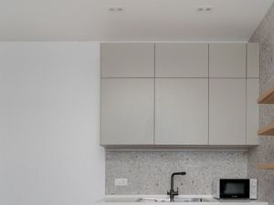 - функциональная кухня, оборудованная встроенной техникой: духовка, варочная панель, вытяжка, холодильник, посудомоечная машина, микроволновая печь;