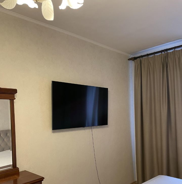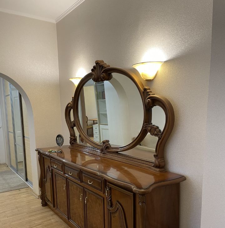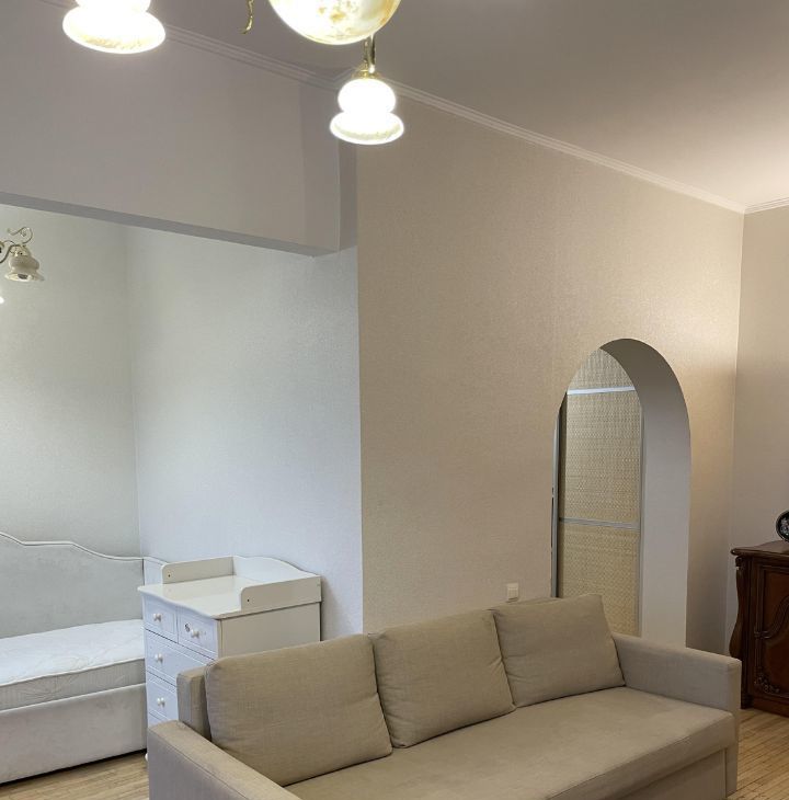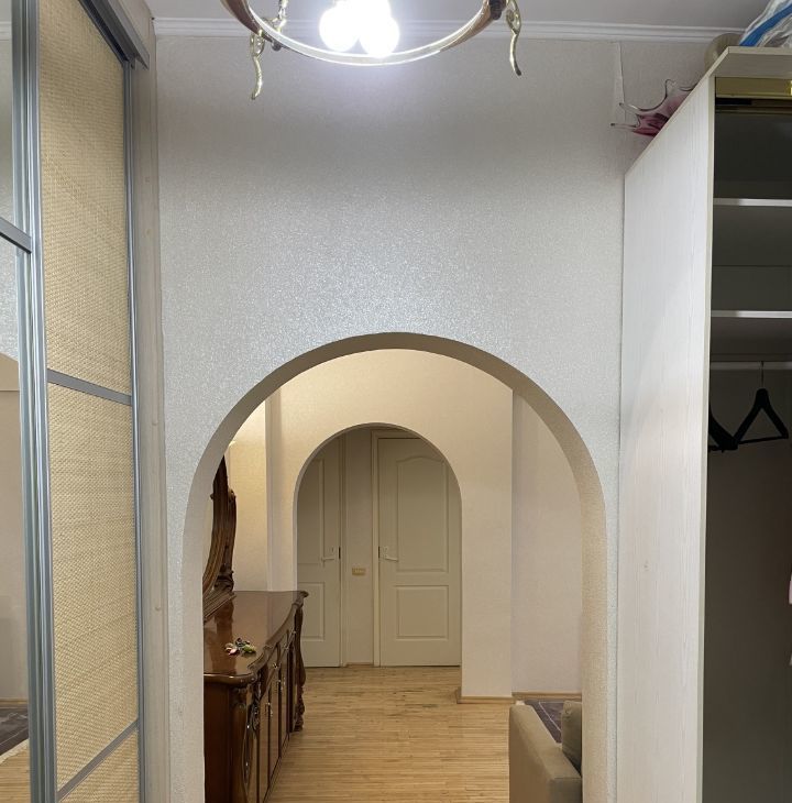 Просторная гостиная комната, в которой можно с удовольствием провести свободное время, здесь большой диван и два кресла, телевизор для просмотра контента по интересам, отсюда выход на балкон и небольшая спаленка, стоит кроватка для размещения ребёнка и комод, есть кондиционер, в спальне большой шкаф с зеркалом, есть кондиционер и телевизор, двуспальная кровать, комод для хранения, прикроватная тумба, в третьей комнате установлена односпальная кровать, есть большой шкаф для хранения, рабочий стол с креслом и комод. Одним из главных преимуществ квартиры является стильная и функциональная кухня, в наличии посудомоечная машина, духовой шкаф, варочная поверхность, большое количество полок и ящиков для хранения, электрочайник, лучшие завтраки, обеды и ужины будут проходить за уютным круглым столом. В коридоре огромный шкаф купе и комод-стенка с большим зеркалом, поместится абсолютно всё, стиральная машина так же в наличии, санузел разделён.