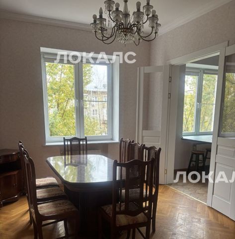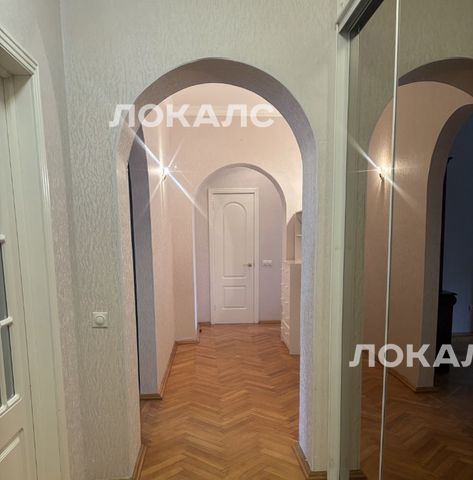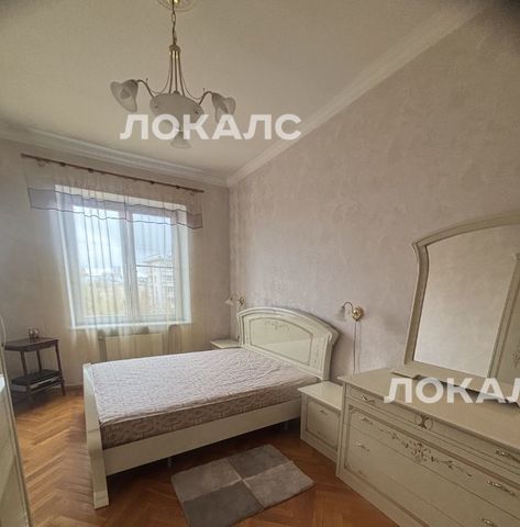 Сдаётся уютная 3-комнатная квартира с евроремонтом, расположенная на 6-м этаже 8-этажного кирпичного , сталинского дома. Общая площадь квартиры составляет 90 кв.м, жилая — 68 кв.м, а площадь кухни — 10 кв.м. Высокие потолки (3 метра) создают ощущение простора. Окна выходят во двор, поэтому в квартире тихо и спокойно. До метро всего 10 минут пешком.