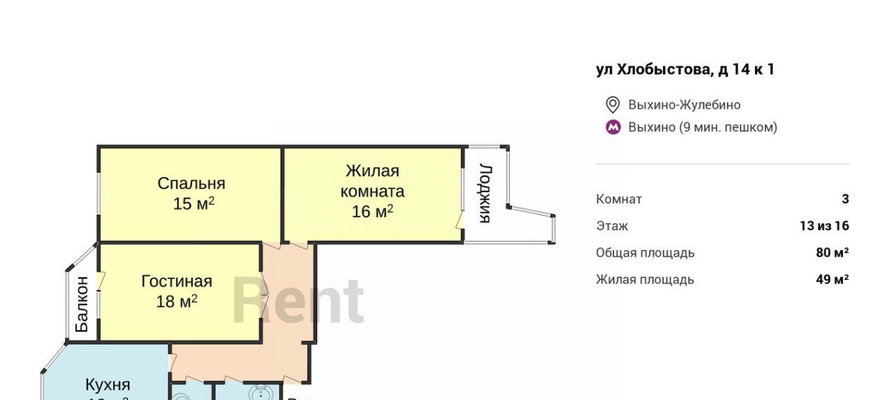 3-к кв. Москва ул. Хлобыстова, 14К1 (80.0 м²)