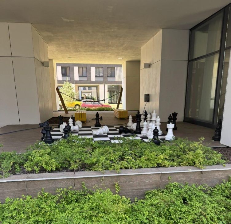 Двор без машин ,рядом лес , во дворе дет сад и школа , магазины вкусвилл, магнит , пекарня и т.д