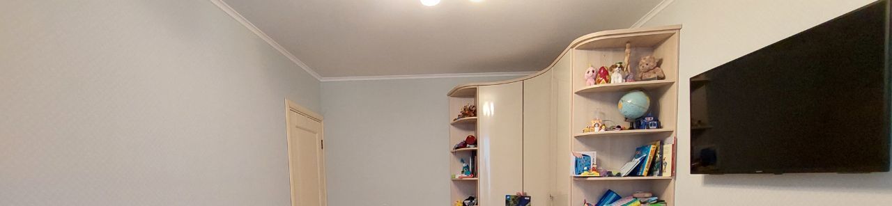 * В детской комнате 15 м2 - вместительный угловой шкаф - купе, удобный 2х спальный диван, рабочий стол, ТВ ЖК.