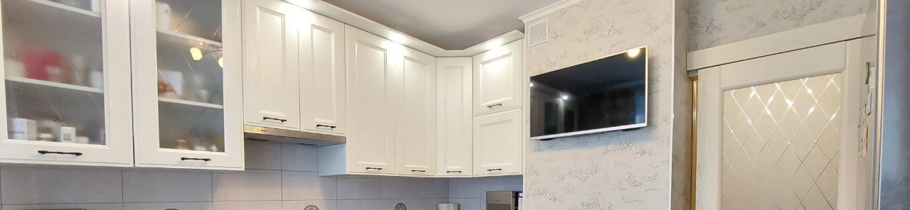 * В кухне 10 м2 - кухонный гарнитур со встроенной бытовой техникой: варочная панель- стеклокерамика, вытяжка, духовой шкаф, посудомоечная машина и отдельностоящий 2х камерный холодильник. В обеденной зоне - кухонный диван и раскладывающийся обеденный стол.