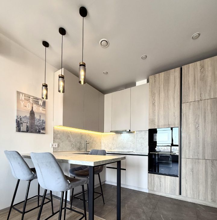 В апартаментах выполнен качественный дизайнерский ремонт с европланировкой. Просторная и функциональная кухня-гостиная; мастер-спальня с санузлом и гардеробной; спальня; совмещенный санузел. Заказная мебель, теплые полы в санузлах, кондиционирование. Закрытая охраняемая территория с детскими площадками и зонами отдыха, подземный паркинг, консьерж и пр.
