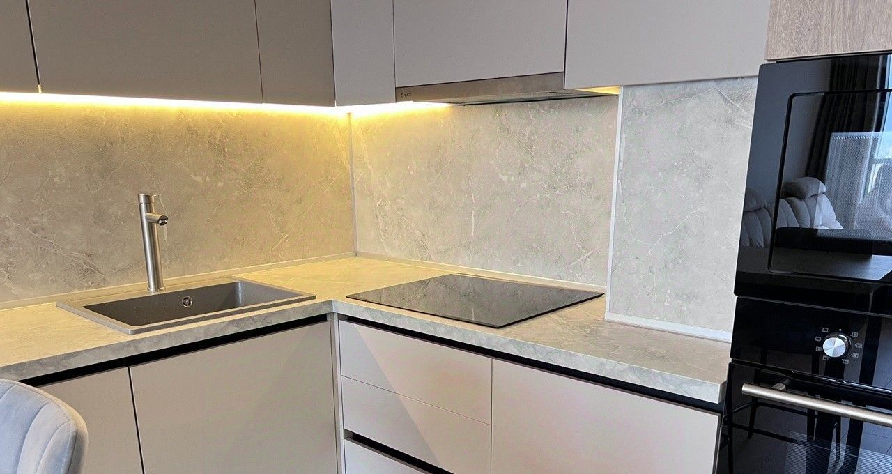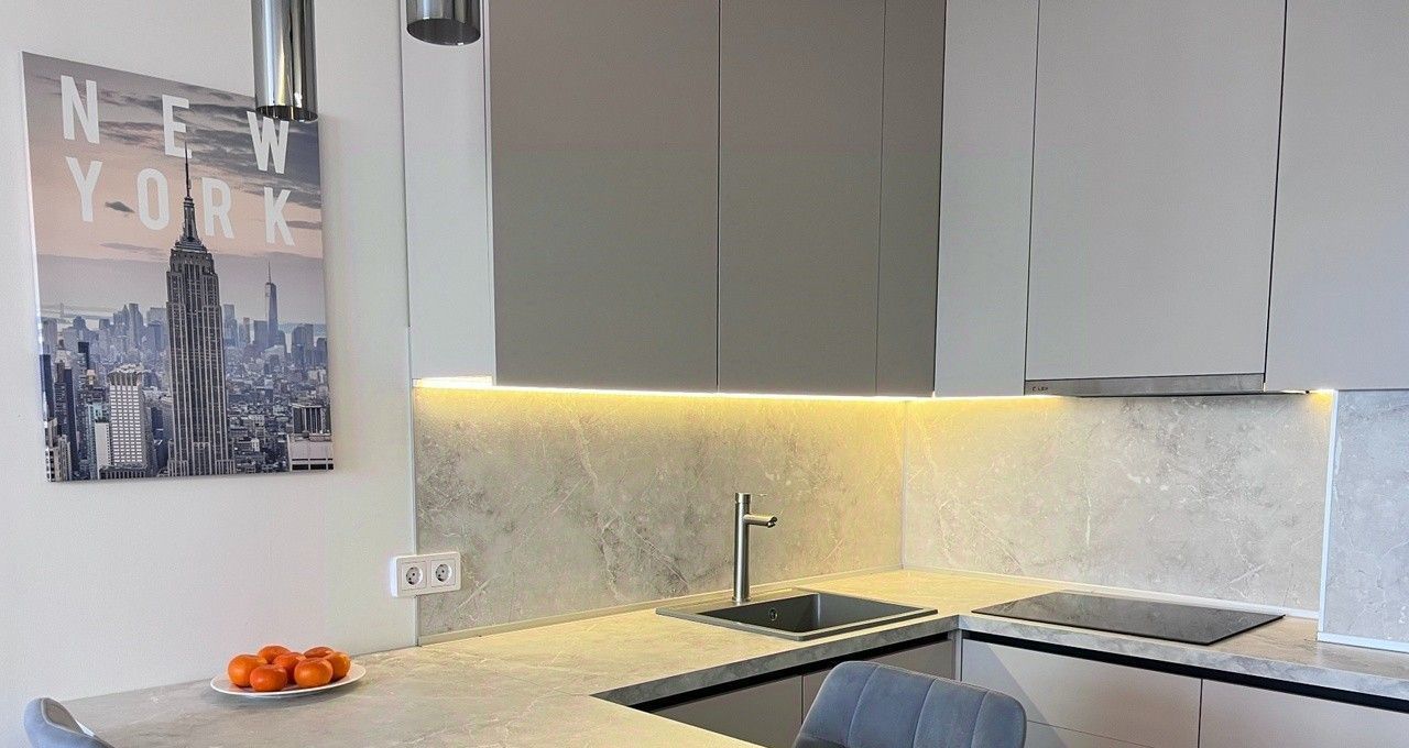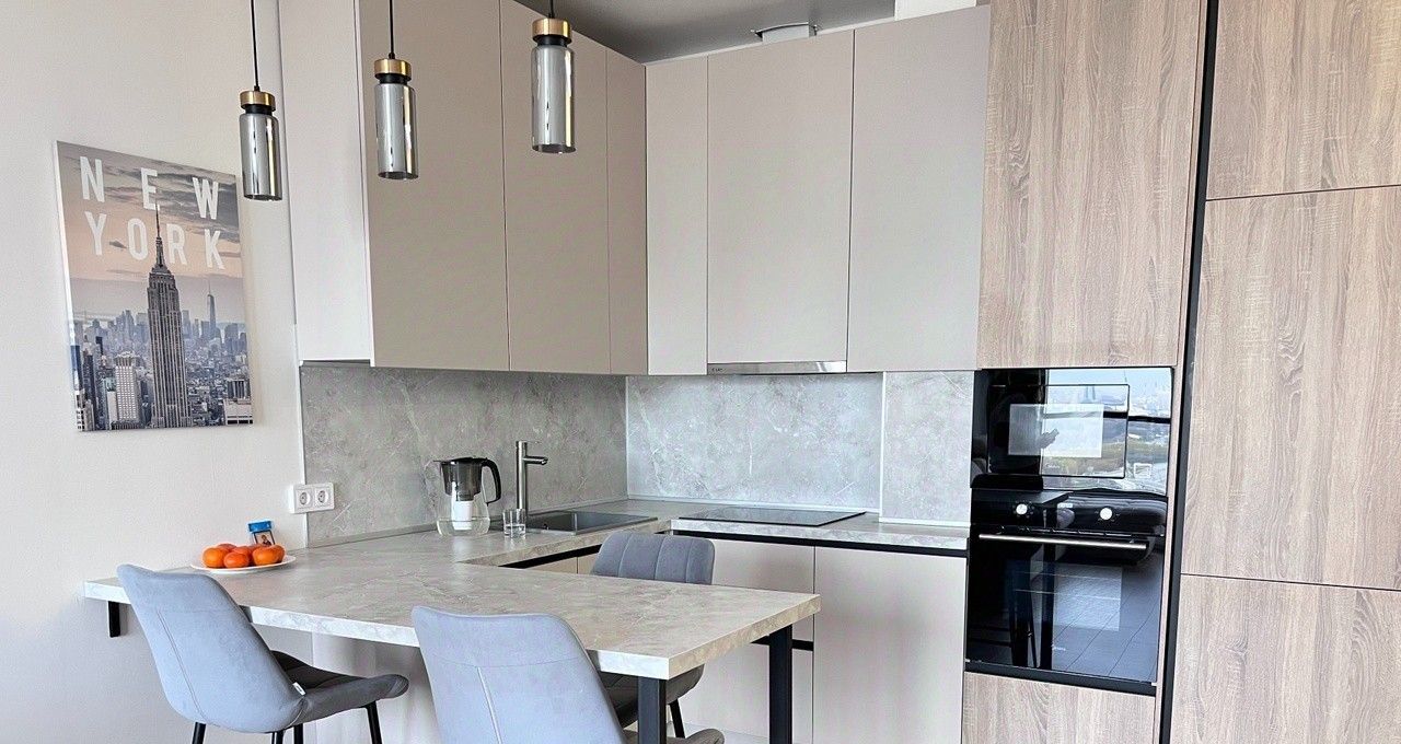 В помещении есть вся необходимая техника, включая посудомоечную машину и кондиционер, а также качественная мебель в комнатах и на кухне.