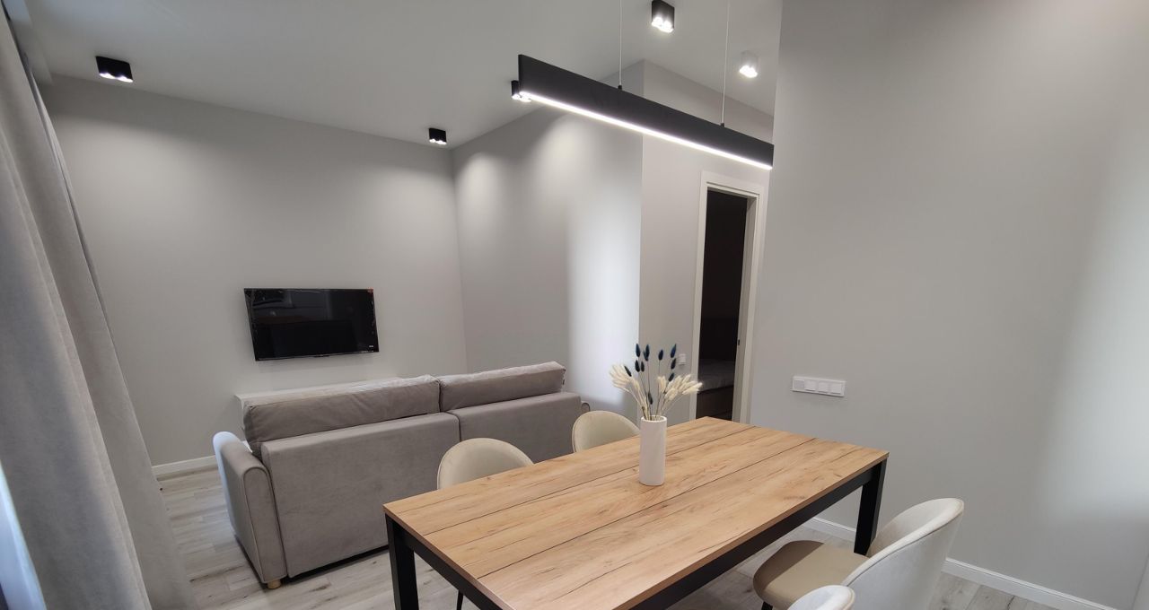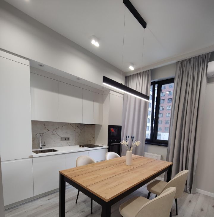 В квартире выполнен дизайнерский ремонт, который придает помещению уникальность. Вся необходимая мебель уже установлена: удобные диваны, шкафы и кровати. Кухня оборудована современной техникой: кондиционер, холодильник, посудомоечная машина, телевизор и стиральная машина. Есть вместительная гардеробная. Ванная комната оснащена ванной, что особенно приятно для вечернего отдыха. Вокруг дома есть удобная парковка для вашего автомобиля. В шаговой доступности расположены магазины для повседневных покупок. Отличная транспортная доступность позволяет быстро добраться до любой точки города.