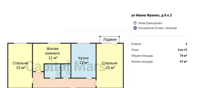 3-к кв. Москва ул. Ивана Франко, 8К2 (70.0 м²)